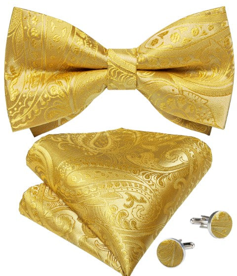 - Includes: Bow Tie, Pocket Square and Cufflinks