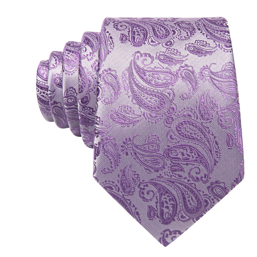 Pale Purple Paisley XL Tie, Pocket Square and Cufflinks