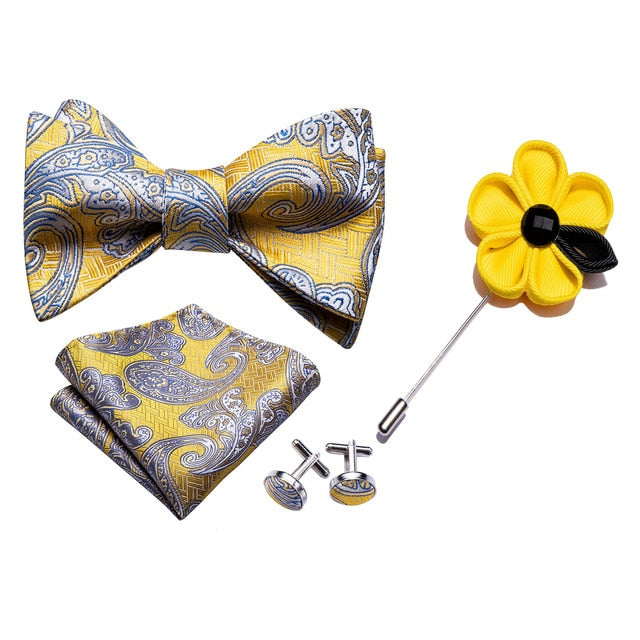 - Includes: Bow Tie, Pocket Square, Cufflinks and Lapel Pin